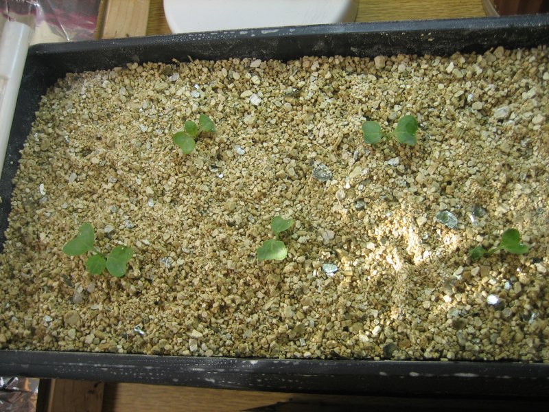Пять ростков, пока ещё живые, мы решили пересадить в грунт из вермикулита. Это инертный минерал, с замечательной влагоёмкостью и рыхлостью.