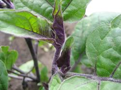 На гряде с баклажанами фосфорная недостаточность была выявлена также и у кориандра и перцев.