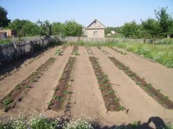 Итак, 3 июня (так как не обещали заморозков, решили пораньше) мы посадили две гряды батата Победа-100, с различным расстоянием между кустами (52 и 64 см).