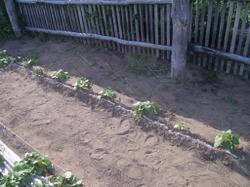 9 мая мы посадили ещё две гряды с Победой-100 и Женьшенем, но с расстоянием между кустами в 60 см.